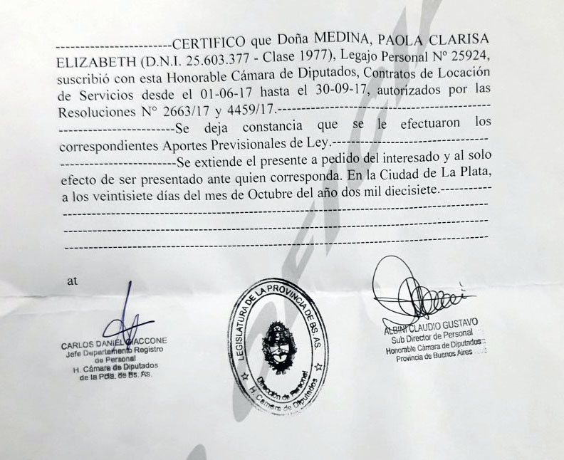 La compungida mujer agregó: «Era una ayudita, $ 3.500 por mes… Pero cuando fui al banco a fin de mes a cobrar la cooperativa, el cajero me miró y me dijo ‘¿y usted que viene a cobrar?’ a lo que le dije mi sueldo de cooperativa. Se rió y me dijo ‘señora, usted está en Diputados y quiere cobrar una cooperativa? usted gana $ 35.000 por mes y quiere cobrar acá también!’ lo que negué y le dije ‘yo no trabajo en Diputados! y me mostró la pantalla de la computadora, que decía que yo cobraba 35.000 pesos por mes, vi los datos y era yo! Ahí entendí lo que pasaba» se lamentó.