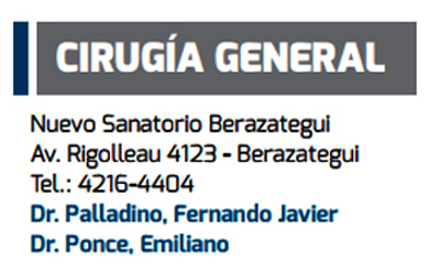 Se trata del doctor Fernando Javier Pa-lladino, quien figura efectivamente, como ‘médico cirujano’ del Sanatorio Beraza-tegui de Av. 14 y 141 del distrito.