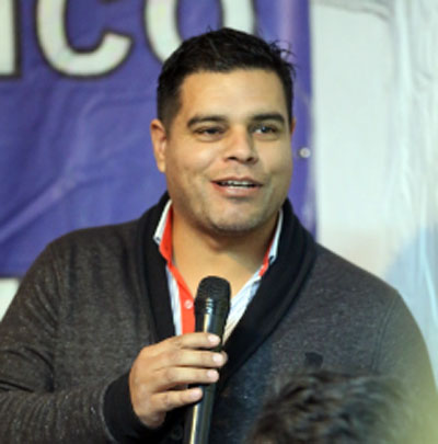Es abogado y es acompañado por los precandidatos a concejales Florencia Pécora, Héctor Ravelo, Griselda Duckardt, Arturo Gómez, Cecilia Marina Vizgarra, Alejandro Manuel Juárez.