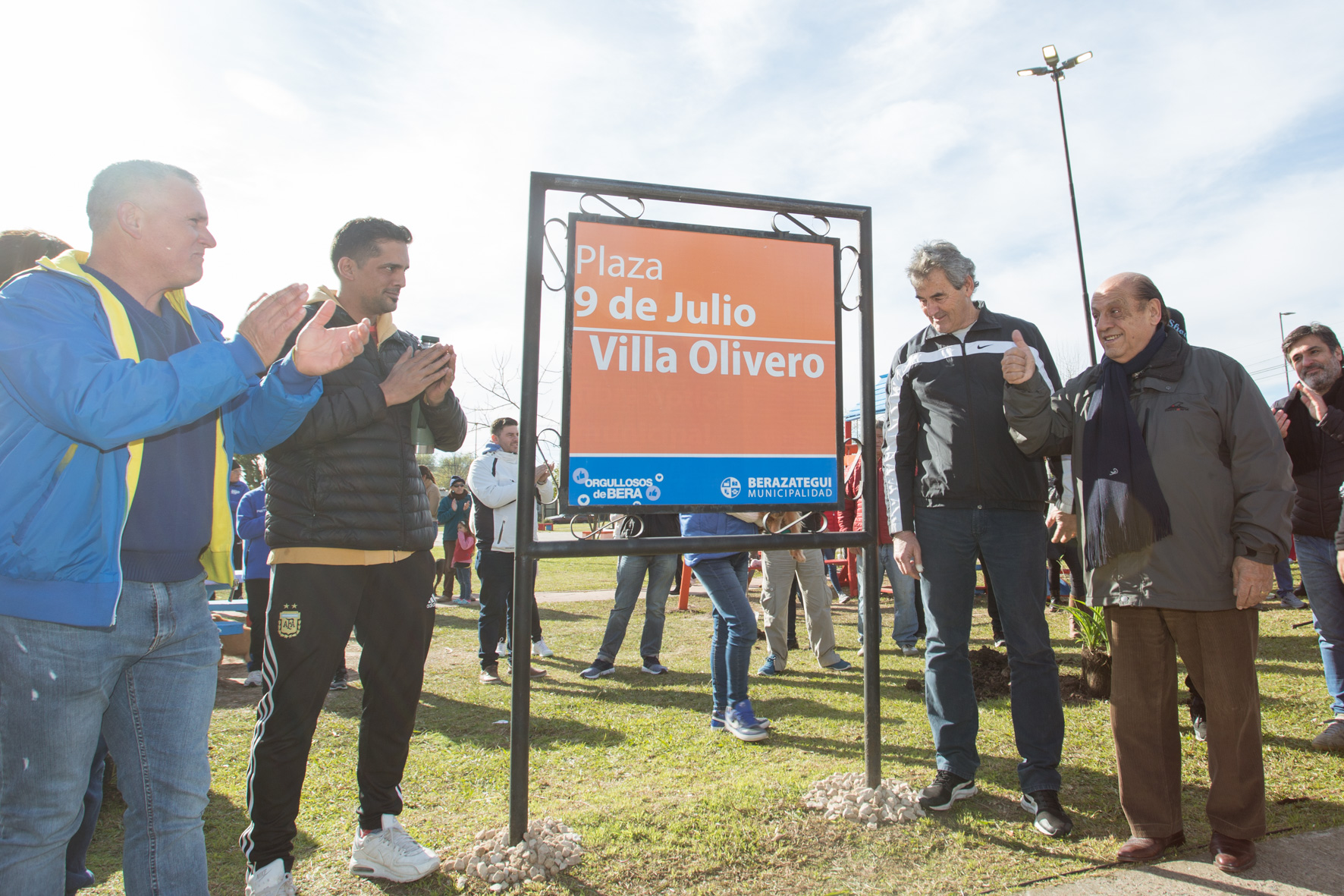 Se renovó la plaza ‘9 de Julio’ de Villa Olivero, ubicada en calle 155 y 9, donde los vecinos ahora disfrutan de nuevas mesas y bancos, juegos reparados, una estación aérobica, luces led fabricadas en la ciudad, y el reacondicionamiento de las canchas de fútbol y vóley, que es utilizada por adultos mayores del barrio que representan a Berazategui en torneos de Newcom (vóley adaptado).