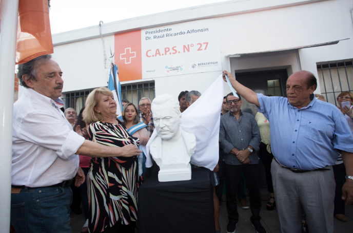 Hace apenas tres meses atrás, Berazategui rindió homenaje en memoria del primer presidente argentino que asumió después de la última dictadura en el país, el doctor Raúl R. Alfonsín, y lo hizo en una ceremonia que se realizó en el Centro de Atención Primaria de Salud N° 27 sito en 50 entre 127 y 128 de Kennedy Norte, Hudson, al cual le fue impuesto el nombre del dirigente radical, en un acto que contó con la presencia de su hijo, el diputado Ricardo Alfonsín, la presidente de la UCR local, Liliana Ríos y del entonces presidente del Concejo Deliberante de Berazategui Dr. Juan J. Mussi, entre otros.