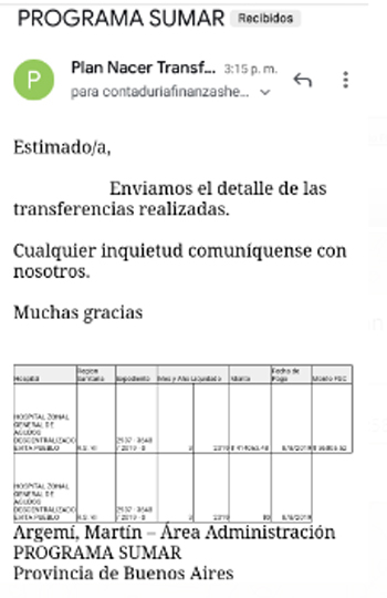Sin embargo, los comprobantes que compartieron con este Semanario, demostraría que la Provincia ya había transferido -en este mes de agosto- cerca de $ 500.000 en ese concepto, lo que -presumen- significaría la aplicación del mismo ‘modus operandi’ de las guardias, es decir, llega la plata pero no se sabe donde va a parar…