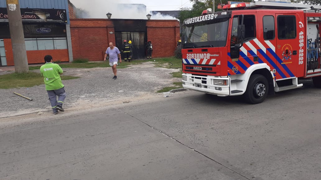 Por causas que se desconocen, esta mañana ardió una propiedad ubicada en Dardo Rocha entre 12A y 13 de Berazategui, perteneciente a una agencia de venta de automotores.