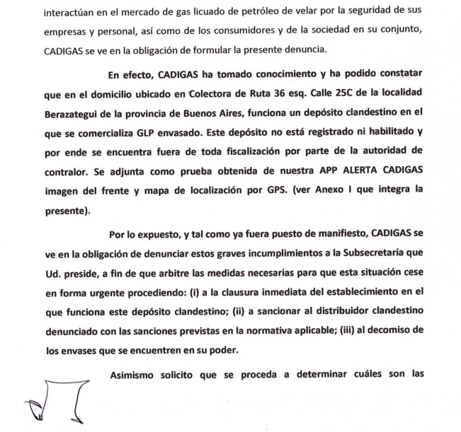 El depósito de marras había sido denunciado ante el ministerio de Energía de la Nación en 2016 por firmas distribuidoras de garrafas, ya que en ese lugar -Colectora de ruta 36 y calle 25C- se utilizaba el nombre de otras firmas distribuidoras que nada tenían que ver con la comerciante de dicho lugar.