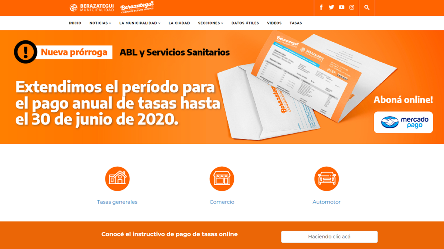 La Municipalidad de Berazategui recuerda que se extendió hasta el 30 de junio el beneficio de pagar las tasas de ABL (Alumbrado, Barrido y Limpieza) y Servicios Sanitarios (agua y cloacas), aprovechando un descuento del 30% por el pago anual anticipado. La medida fue adoptada en el marco de la actual emergencia sanitaria que atraviesa el país como consecuencia de la pandemia de COVID-19.