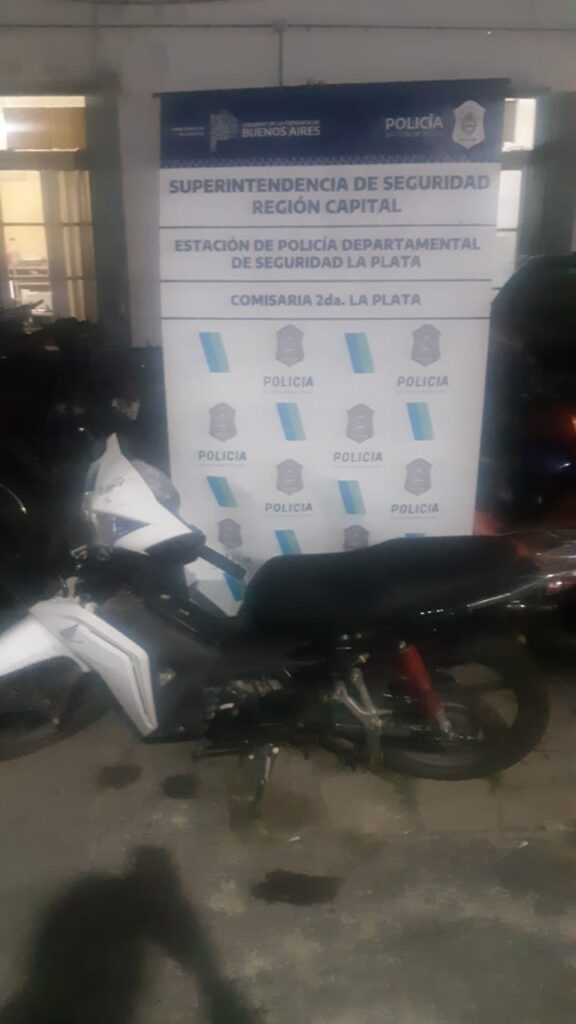 Personal policial de la comisaría 2da de La Plata al mando del comisario Alejandro Viscelli, realizaba operativos contra el accionar de ‘motochorros‘ recibe la denuncia de dos jóvenes quienes manifiestan a los uniformados que instantes antes, un motochorro los intimidó con un arma de fuego sustrayéndole un celular y elementos personales.