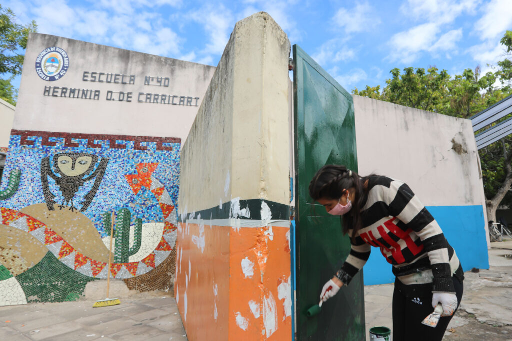 “Habíamos gestionado esta jornada de pintura para hacerla antes del inicio de clases y aquí estamos: trabajando todos juntos para dejar en óptimas condiciones este establecimiento educativo, con el Consejo Escolar pintando la parte externa y la Cooperadora de la Escuela encargándose del interior de las aulas”, comentó la directora de la Primaria N° 40, Gabriela Lapadú.