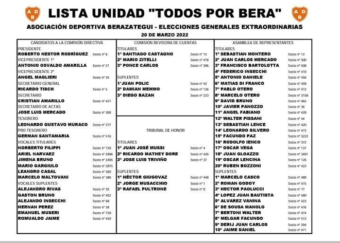 Van también en la montonera de gente, Luis Mercado -director del Cementerio municipal- como Tesorero; Leonardo Muraco, contador municipal como protesorero; Beto Filippi, ex jugador del club; Berenjena Mantovani (intendente del club Ducilo) como vocal titular; el ´Tuqui’ Riva; Santiago Castaño, entre los que están en la lista de ‘Unidad’.