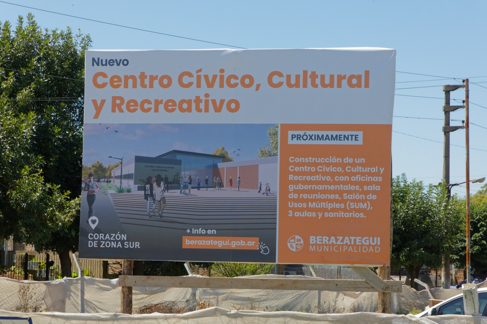 Los secretarios municipales de Cultura y Educación, Federico López; y de Servicios Públicos, Sergio Faccenda; recorrieron las obras de construcción y revalorización del Centro Cívico, Cultural y Recreativo, así como la puesta en valor de la Plaza Carlos San Martín y la refuncionalización del Velódromo Argentino Ríos. Estas se encuentran sobre Camino Real, entre las calles 412 y 418, en Juan María Gutiérrez. Allí, la Municipalidad de Berazategui avanza en la concreción de este proyecto integral.
