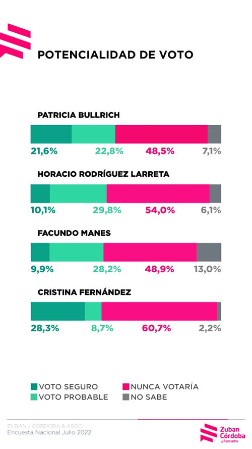 En cuanto a Opina Argentina, la intención de voto negativa ascendió al 67%, una de las más altas entre las encuestadoras.