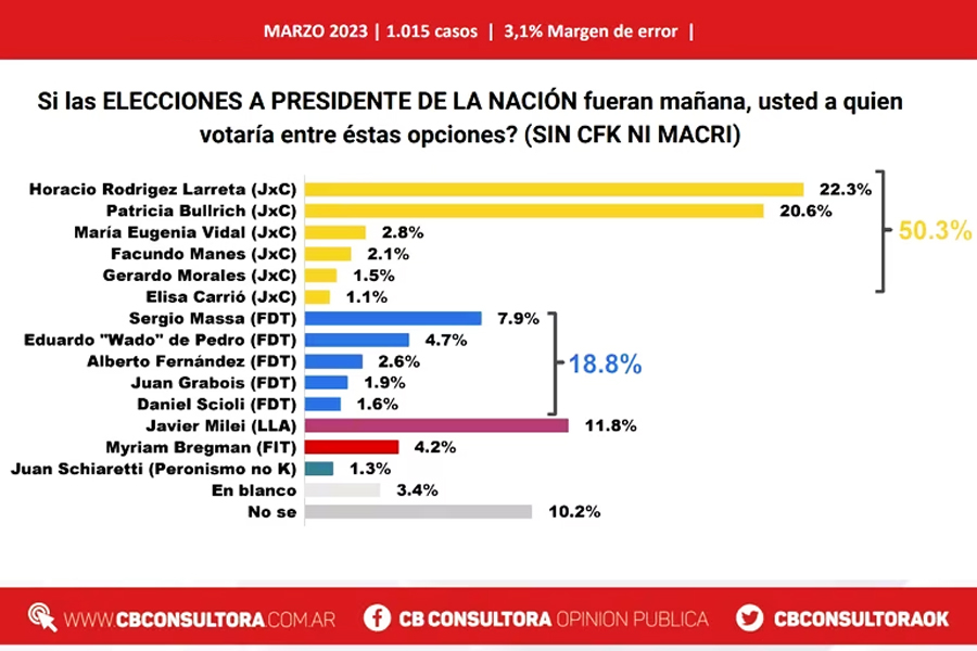 Read MoreUna vez mas, la prestigiosa empresa de sondeos ‘CB Consultora’ dio a conocer un trabajo sobre candidatos presidenciales, con la