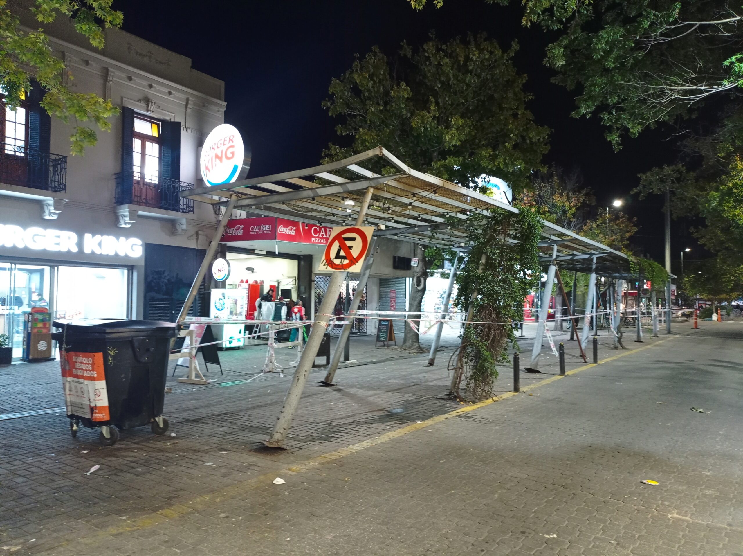 Ayer en horas de la tarde, maniobras imprecisas de un camión que operaba en Av. 14 y 147 terminaron provocando que el vehículo arranque de cuajo, la pérgola que adorna la entonces Peatonal, y que gracias a Dios no cayó sobre la gente que estaba tomando café o degustando un helado bajo la misma.