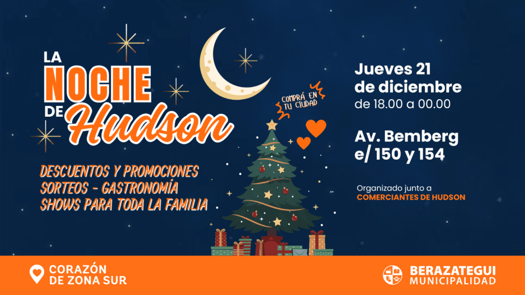 El cronograma completo es el siguiente: Viernes 15: Festejo Navideño en la Plaza Comercial Hudson. De 17.00 a 21.00, a la altura del Km. 33.5 de la Autopista Buenos Aires – La Plata.