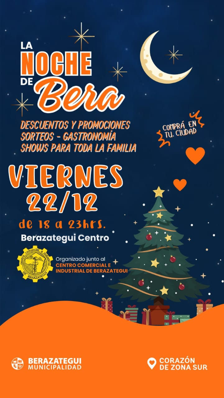 Viernes 22: La Noche de Bera. De 18.00 a 23.00, en Berazategui Centro.