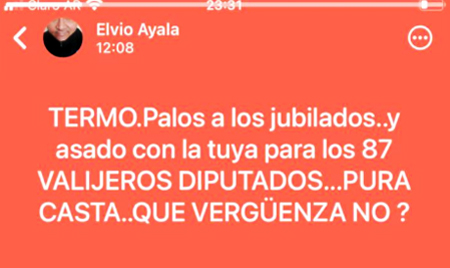 En las últimas horas, el ex funcionario municipal Elvio Ayala, subió un banner a las redes, fustigando el ‘asado’ que hizo el presidente Javier Milei con un grupo de gente en la Quinta de Olivos, citando dos puntos claves: Uno, «comiendo asado con la nuestra…» y segundo, «que vergüenza no?».