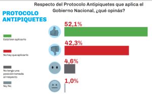 El trabajo de consulta a la opinión pública de ‘Giacobbe & Asoc.’ incluyó, asimismo, sobre la aceptación o no del ‘Protocolo Antipiquetes’ del Gobierno Nacional.