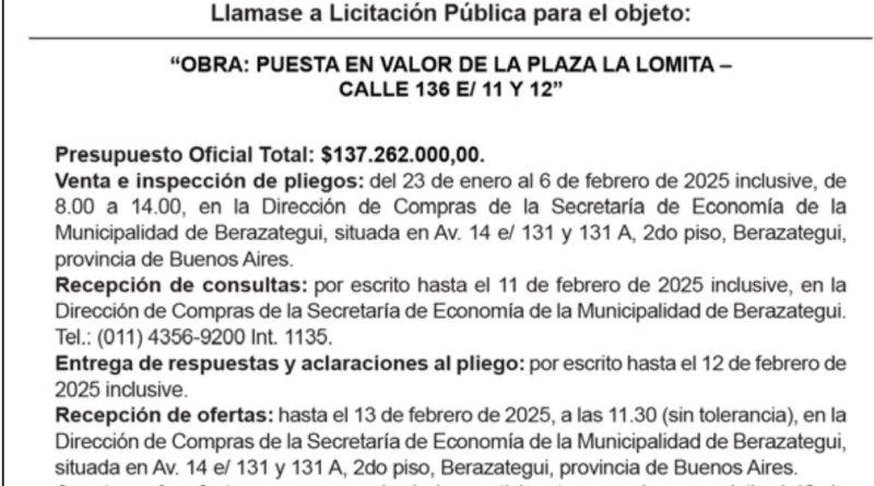 Read MoreComo un verdadero ‘balde agua fría’ cayó en la comunidad, el llamado a licitación que el municipio hizo para «poner